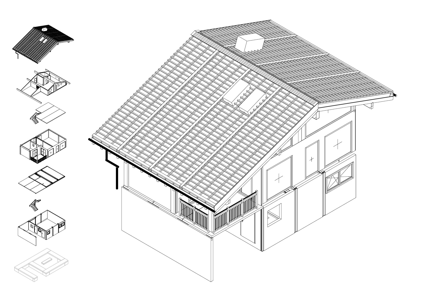 Planchers en bois avec chape et chauffage intégré, ainsi que toits modulaires prêts à poser.